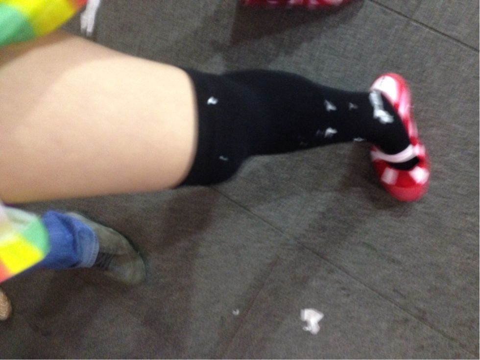 スカートに生足に厚底です。