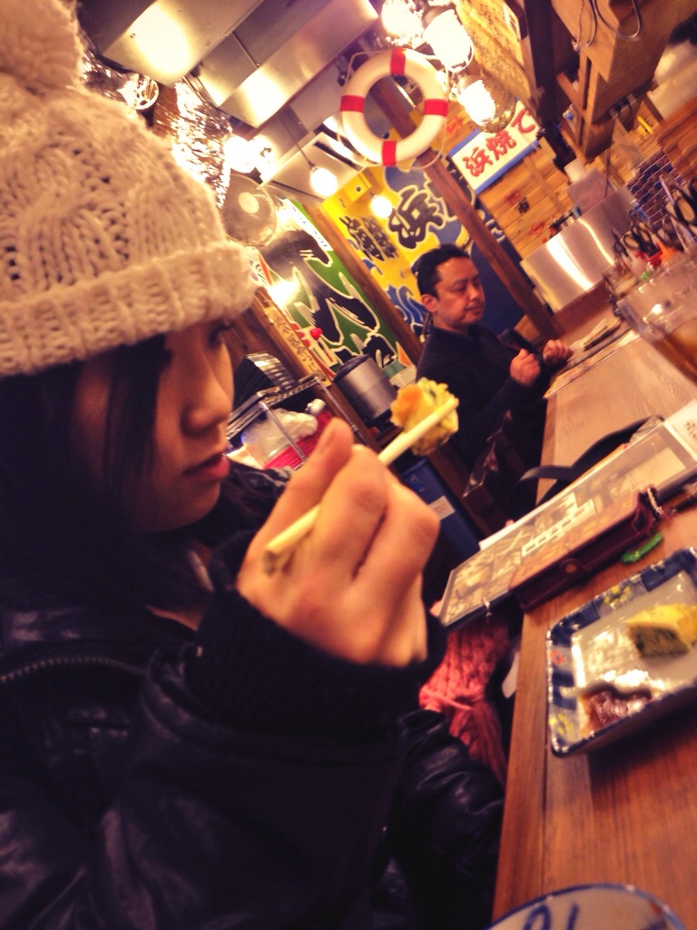 卵焼きを見つめるなぎ( ´ ▽ ` )ノ