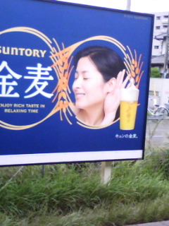 淵野辺のホームにある金麦の看板のダンレイが