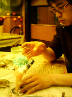 きっと彼もメガネに水滴つけてるんでしょうにー